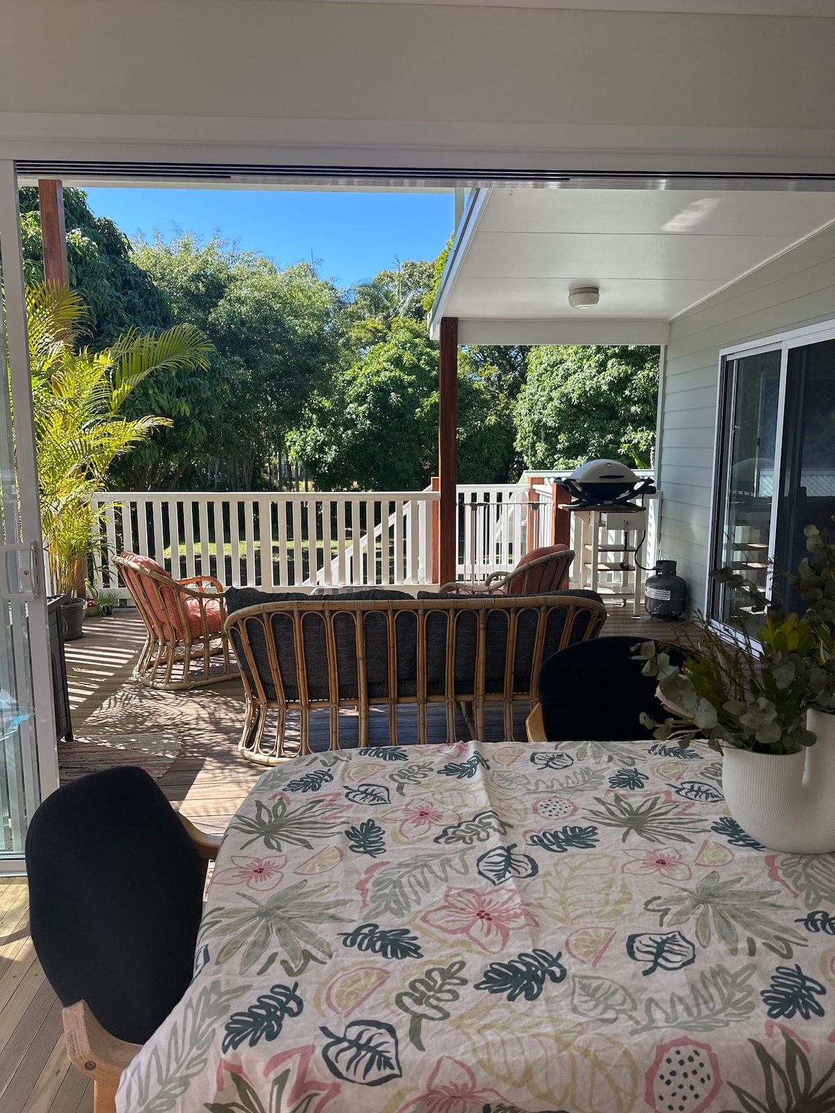 Relax in comfort of this well maintained modern accommodation located in the picturesque setting of the Glasshouse Mountains. Your accommodation is attached but separate from the main house with your own private garden,outdoor area to enjoy after a day of exploring. Discover this beautiful area with our Hinterland, Mountain & Rainforest walks, National Parks, Australia Zoo, Big Kart track all on your doorstep. If it’s a day at the beach you’re after it’s only a 30 minute drive..win win!