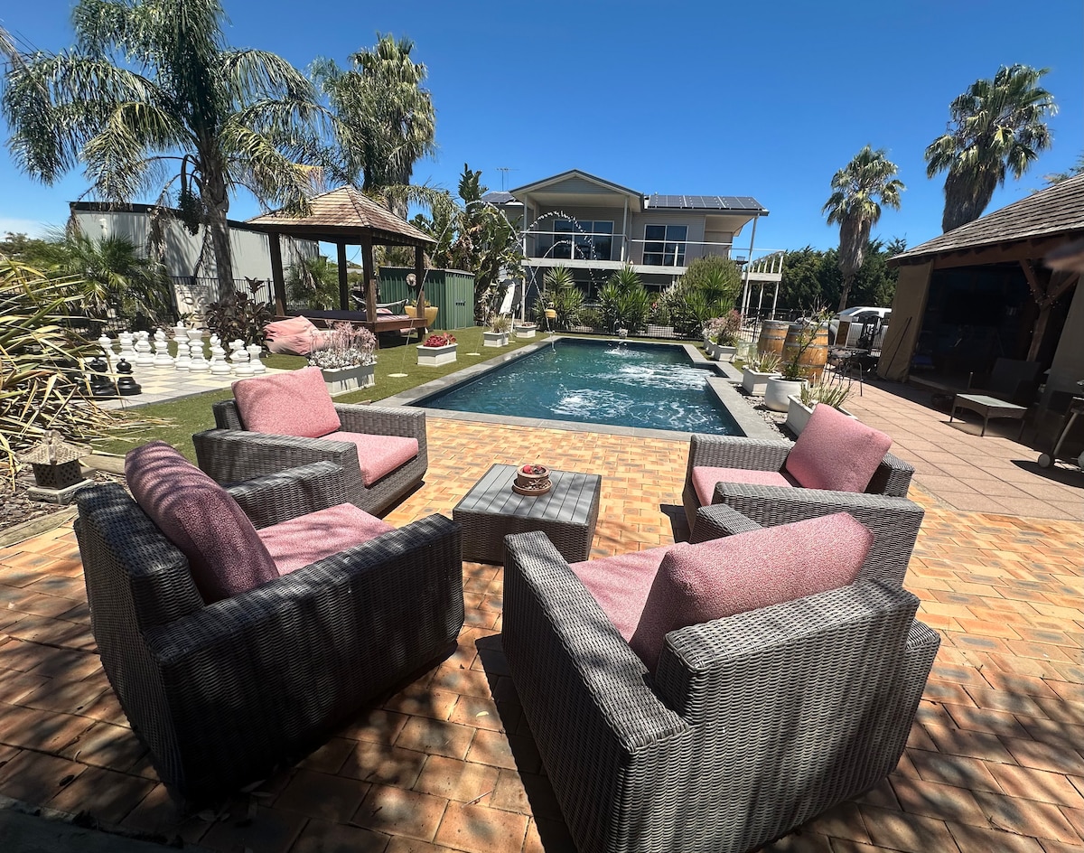 Located in McLaren Vale, this fabulous home features 2 queen bedrooms, a living room with additional sofa bed, and a modern bathroom with a refreshing shower. With amenities like AC, WiFi, and washing machine, guests can relax and unwind. Enjoy our dart board & massage chair on your balcony. Whether you're here for a wine tasting adventure or simply seeking a serene getaway, this property is the perfect home base for your vacation. Enjoy our swimming between the hours of 9am & 6pm