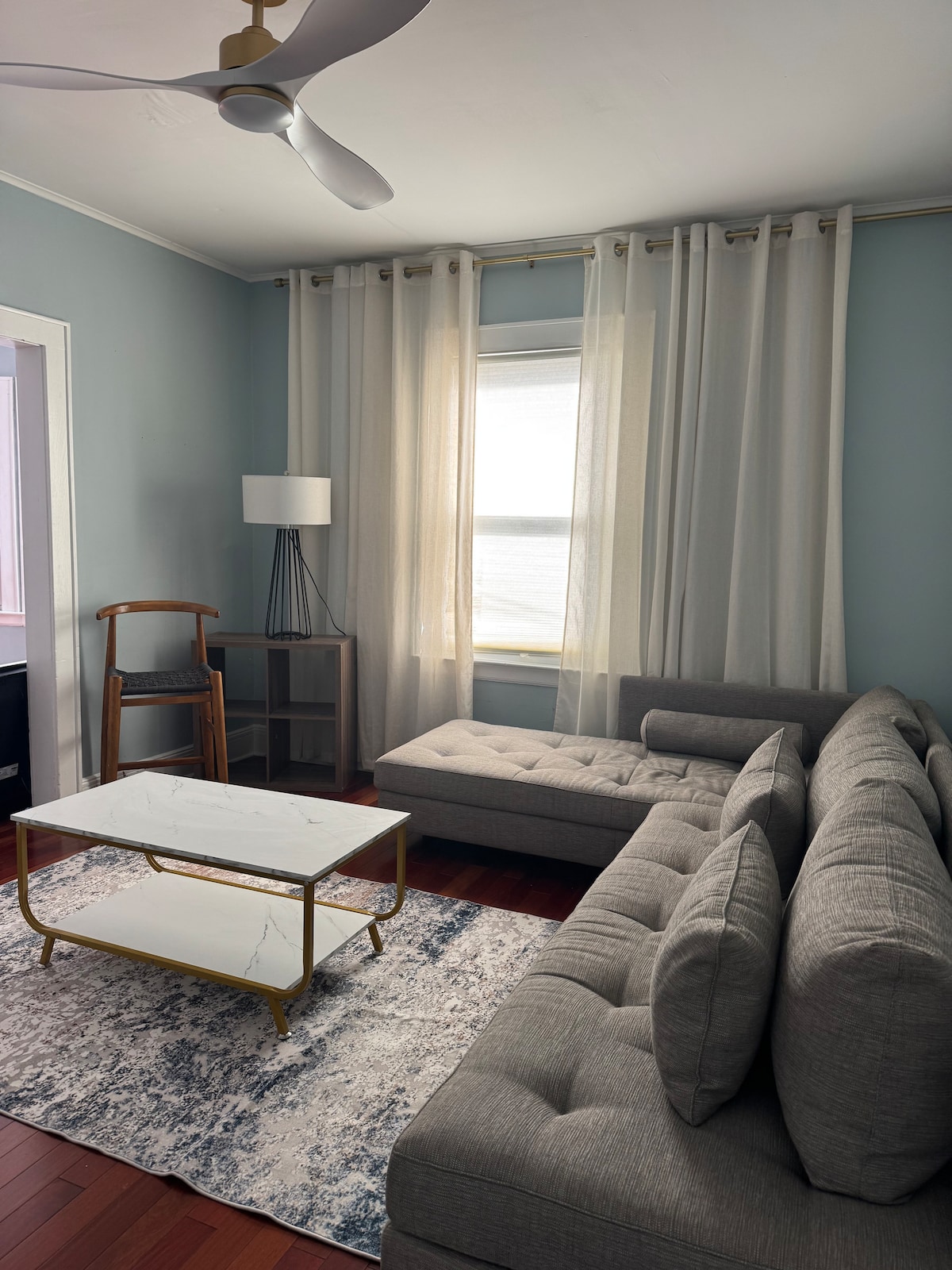 Like having a home away from home feeling. Private entrance little to no interactions with anyone. Sub first floor basement apartment with bedroom plus separate room that can be used for office area to work with laptop or extra guest. Futon included in room. Gym equipment located on the exterior by the entrance of unit. Kitchen, washer, dryer all accessible. Keurig fully stacked.