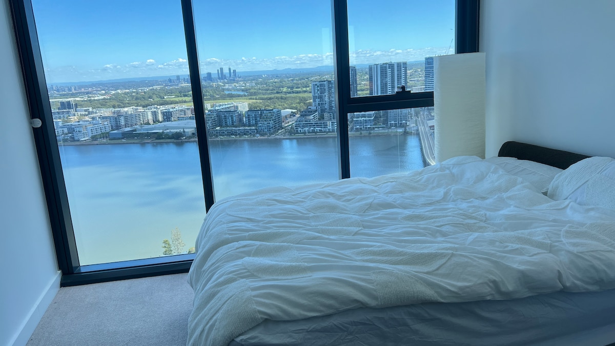 🏡 Bright 2-Bedroom Apartment with Water Views & Balcony | 130sqm (100 sqm internal). 6 mins walk to train station and No. 533 bus downstairs. Rhodes central and restaurants within 5 mins walk. perfect for couples, small families, business travellers, or extended stays. 🌅 Key Features: • 2 bedrooms, each with private balcony access • 2 bathrooms, including a master en-suite • Sun-filled north-facing living room • Fast Wi-Fi and air conditioning
