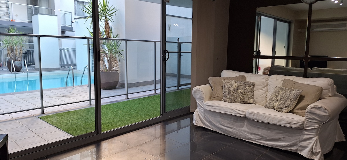 Please make sure to read through all the details to avoid any misunderstandings. Save 20% Monthly, 5% Weekly. Cozy Nest 1BR with pool views from a spacious balcony, Queen bed, big closet, desk/chair for work, 75” TV, free secure parking, gym sauna access, huge pool, high speed Wi-Fi, full kitchen, free laundry to keep your adventures hassle—800m to Swan River, 5-min drive to CBD, Stadium access, near Langley Park. Free City link bus Airport 18 mins by car Bus stop nearby 80m Walkable to City