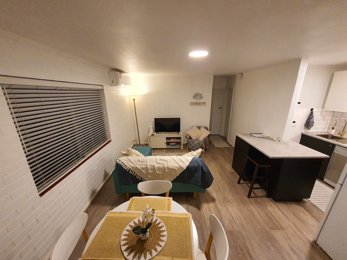 A self contained air conditioned apartment with separate entry and parking, a large bedroom with a walk in robe and ensuite. A leafy courtyard, lounge area and kitchen with your own lovely private garden, close to the airport,public transport,shops,parks and a nature reserve. Many of our guests have enjoyed the reserve with walks and jogging along the paths, enjoying the birds and plant life throughout. We are proud of our Super Host status and high standard accommodation we provide our guests.