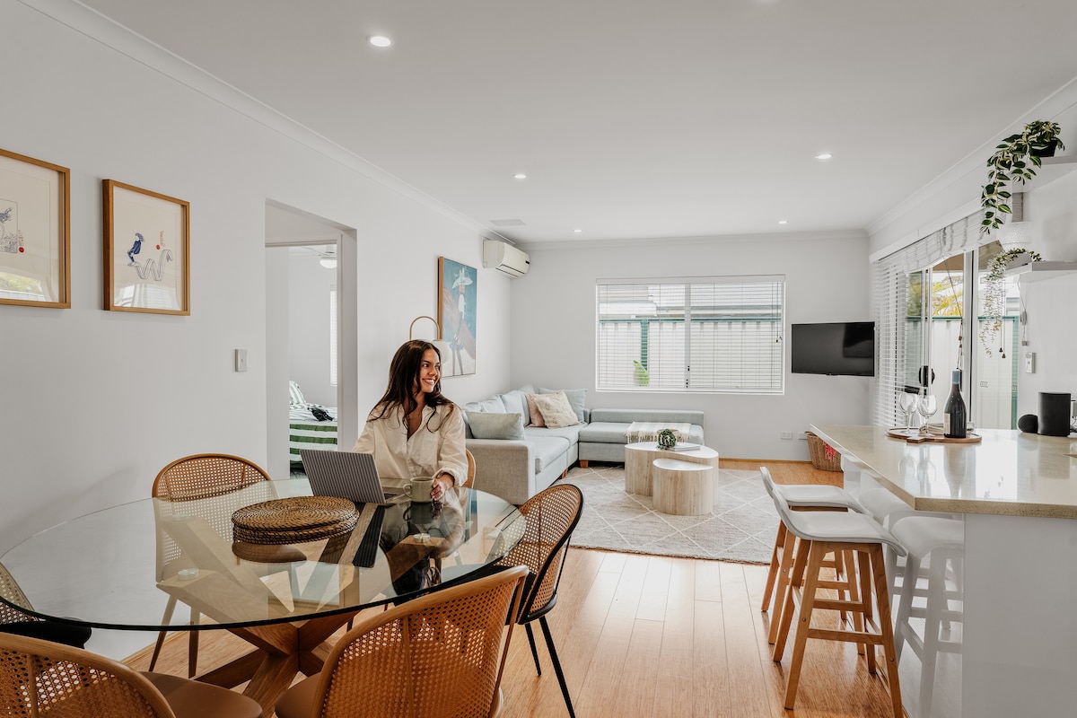 🏖️Prime location - 2-minute walk to beach, supermarket, amazing cafes and multiple playgrounds. 🏡 Fully self-contained with privacy, and comfort kitchen, dining, lounge, and a bathroom with a bonus washer/dryer for long or short stays. 🔐 Convenient self-check-in with door code. 🛜 Free WIFI for streaming or working remotely 🚗 Free parking – one car bay included. 💦 Resort pool with sun loungers with famous water slide and access to BBQ Area / Outdoor Dining.