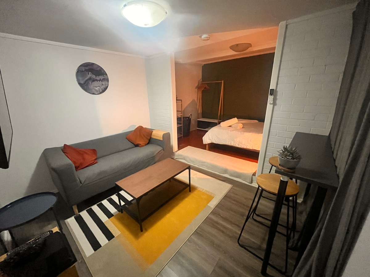 Unwind in your own peaceful, self-contained retreat just 15 minutes from Perth CBD, Optus Stadium and Crown Casino This thoughtfully designed space features a comfortable double bed, lounge, tv and indoor workspace. It complemented by a private undercover outdoor kitchenette, shower and toilet. Step outside to enjoy your private enclosed courtyard space Whether you’re here for a city escape, an event at the stadium, or simply a quiet getaway, this cosy space is private, comfortable and secured.
