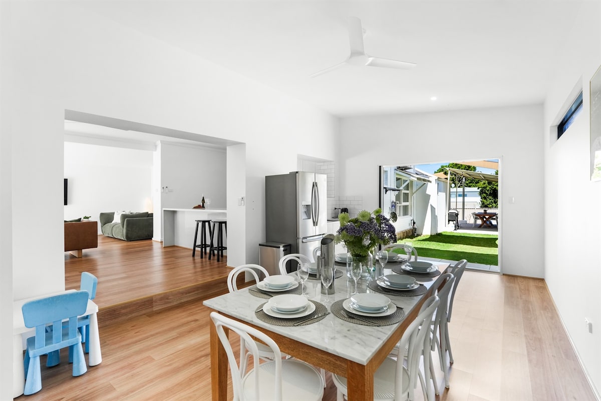 A dog-lover’s paradise! Our open-plan home is full of life, laughter, and pups. Expect barking hellos, wagging tails, and dogs (big & small!) jumping up to greet you. The social space is always buzzing with furry friends — perfect for guests who love canine company. We’re inner-city and close to everything. We offer two bedrooms out of our three: *King: large with lots of storage *Queen: medium with drawers Kids and small/medium pets welcome (fees apply). Wi-Fi and downstairs aircon included.