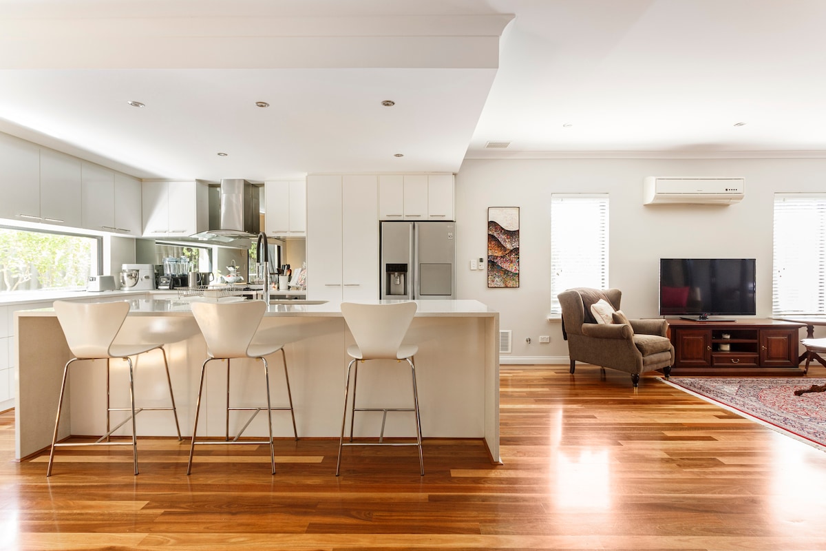 Lux modern and private townhouse. Home theatre & free Wifi. Free lock-up parking. Outdoor al-fresco area with BBQ. Take a stroll to Scarborough beach, Karrinyup Mall, a large family/ outdoor fitness park, great restaurants and nightlife. Quality furnishings and appliances. Large and well-equipped chef's kitchen with gas cooking and Nespresso machine. Full laundry. Great for couples, business travelers, and families. Very close to Abbett Park and Scarborough Sports Club. Quiet neighbourhood.