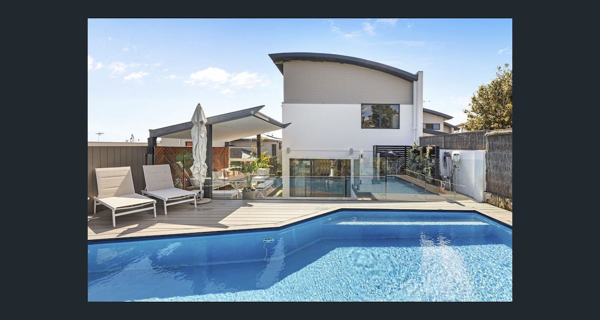 Enjoy this beautiful spacious villa , with a view overlooking private pool , tropical gardens enjoyed day and night. Great space any time of the year. Guests love the alfresco and pool area in the warmer months. Has a gas log fire where you can curl up in front of with a good book or a glass of wine in the winter months. Located opposite park with childrens play ground. Short walk to beach, cafes,shops, bars, parks and public transport.