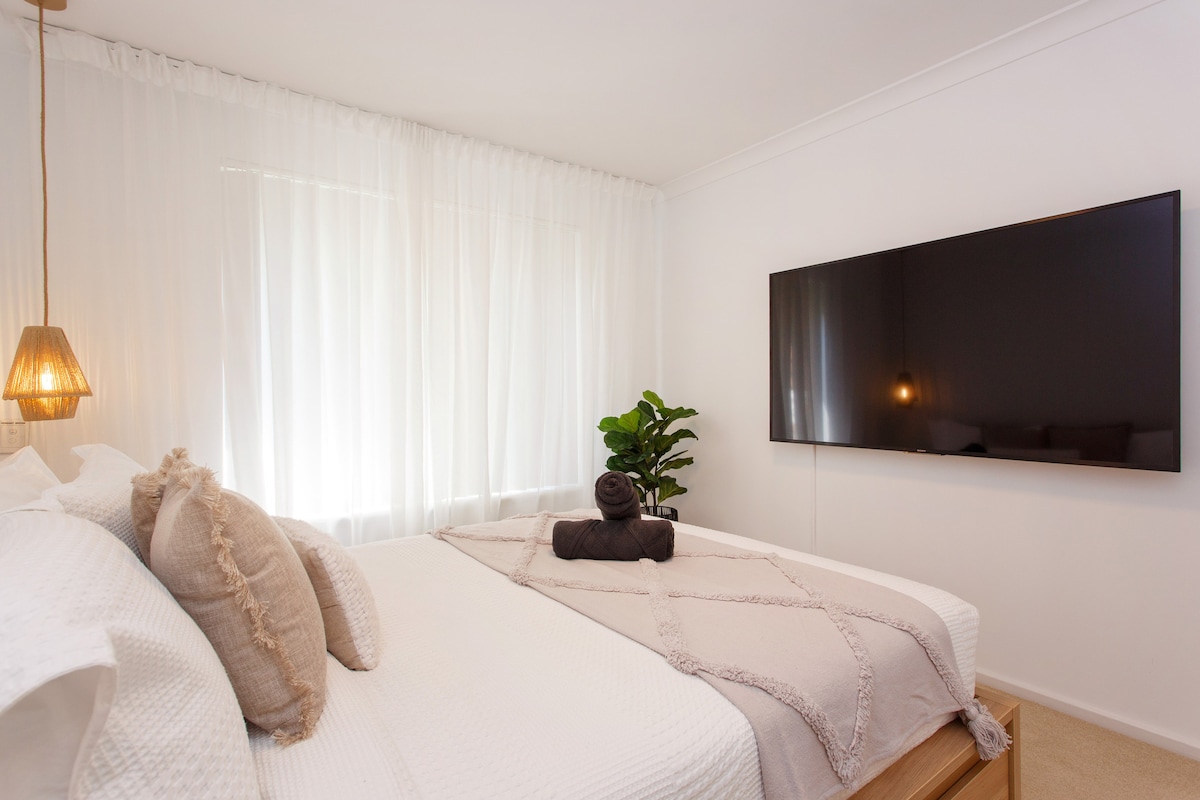 Relax in a modern suite with a private entry, garden views from your bedroom and pool views from your dining room. With a furnished kitchen, outdoor BBQ, dining area & bathroom, king-sized bed with 70-inch TV, WiFi & Stan. For your comfort all the lights with dimmers. Suitable for holidaymakers and business travellers. Close to Scarborough Beach, local restaurants, shopping centres & CBD. Please note: STRICTLY NO GUESTS OR SMOKING ON THE PREMISES.