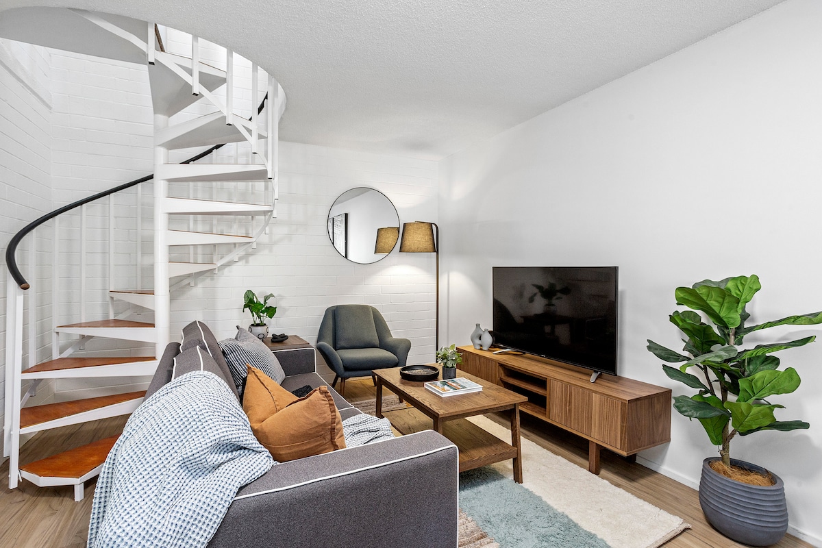 A dog-lover’s paradise! Our open-plan home is full of life, laughter, and pups. Expect barking hellos, wagging tails, and dogs (big & small!) jumping up to greet you. The social space is always buzzing with furry friends — perfect for guests who love canine company. We’re inner-city and close to everything. We offer two bedrooms out of our three: *King: large with lots of storage *Queen: medium with drawers Kids and small/medium pets welcome (fees apply). Wi-Fi and downstairs aircon included.