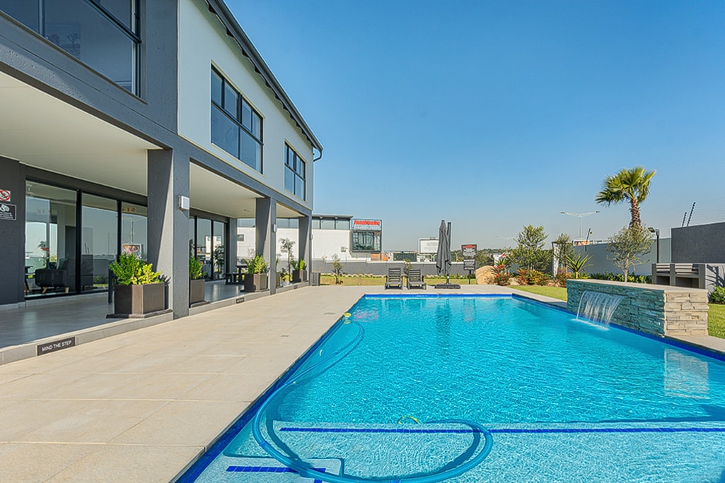 Located in a newly built & secure estate in Lonehill, the apartment is only 7 mins from Monte Casino, Altitude Beach Club, Dainfern Square & Pineslopes. It is on the 2nd floor, overlooking the courtyard & combines modern finishes with tranquility. Enjoy 200mbps WiFi queen size beds, a laptop-friendly home office, an open plan living room, a fully equipped kitchen & an INVERTER for power cuts. Outside, enjoy the shared pool, braai area & 24hr gym. Perfect for business and leisurely stays.
