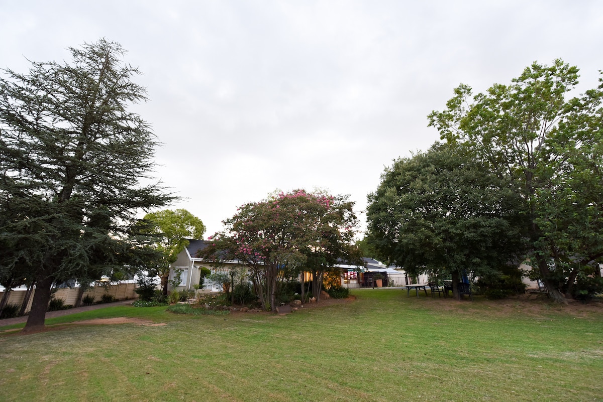 Self-catering Our studios are safe, elegant, and comfortable. Air-con, TV/Netflix, free Wi-Fi, kitchenette with amenities and secure parking. Centrally located in up-market Baileys Muckleneuk. For a romantic break or business trip. Relax after a long day with a cup of coffee in our serene garden under our decade old trees. Walking to Affies Sports Grounds 400m Loftus Versveld 1.2km Tuks 1.6km Boys High 1.4km Hospitals - Groenkloof, Zuid-Afrikaans and Jacaranda 2km UNISA 2.9km ID REQUIRED