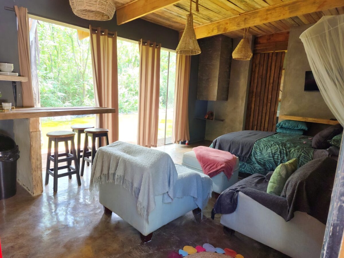 Forest hideout next to dam with indoor fireplace. Ideal for 2 adults and 1 kid. This unique and tranquil getaway will bring back inner peace and reconnection with nature. Enjoy the nightlife sounds and surrounding events that Harties has to offer. Safe and peaceful private lodge which will make you wish you stayed longer..