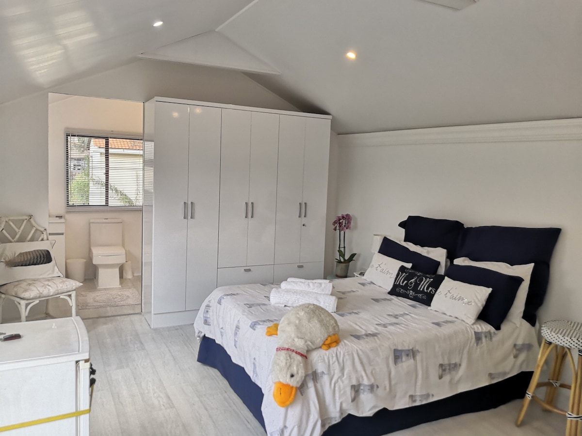 We are perfectly situated on a beautiful small holding of 4 acres with full security (boomed off area, electric fencing and alarms), beautiful garden, with an array of resident birds & geese. The unit is very quiet, private, with secure parking space & has been recently renovated with a modern yet warm feel. You have access to a lot of garden space on the property for short a walk. We supply free cleaning every 2nd week for long stays 2 weeks +, uninterrupted wifi fibre, Netflix & YouTube.