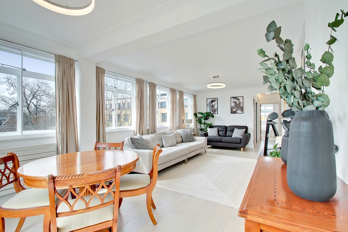 Elegant 1-bedroom Chelsea apartment with oak floors, calming interiors, full kitchen, and access to a quiet communal garden. Just 2 minutes from King’s Road and a short walk to Saatchi Gallery, museums, and Chelsea Physic Garden. Peaceful and stylish with secondary glazing to bedroom and lounge for a peaceful stay Superfast Wi-Fi, Smart TV and great transport links via South Kensington & Sloane Square stations Please remove shoes indoors A perfect London base for couples or solo travellers.