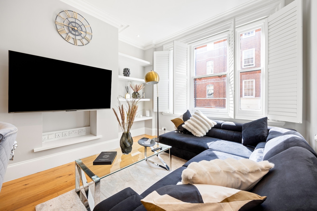 Enjoy a stylish experience at this centrally-located place.Nestled in the vibrant heart of Oxford Circus, this stylish two-bedroom, two-bathroom apartment. The apartment is located in the first floor. Step inside this fully renovated space, where every detail has been thoughtfully chosen to create a tranquil retreat from the bustling city. The apartment is located on a quiet street, yet it's an unbelievable one-minute walk from the world-famous Oxford Street—offering you the best of both worlds.