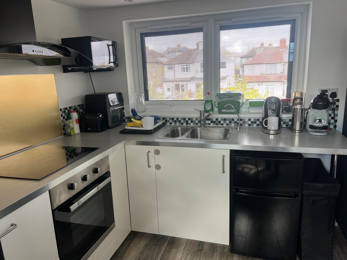This top floor studio is a gem, close to central London. It is a tranquil, spacious hideaway in Finchley.The tube station is 7 mins walk away and takes 25 mins to all London highlights.Separate bathroom+kitchenette The kingsize bed has elegant hotel bedlinen with luxurious duvets & Alpaca throws with a choice of plump feather or anti-allergy pillows.There is off street parking available and easy links to major airports. Quiet location but close to cafes and shops.