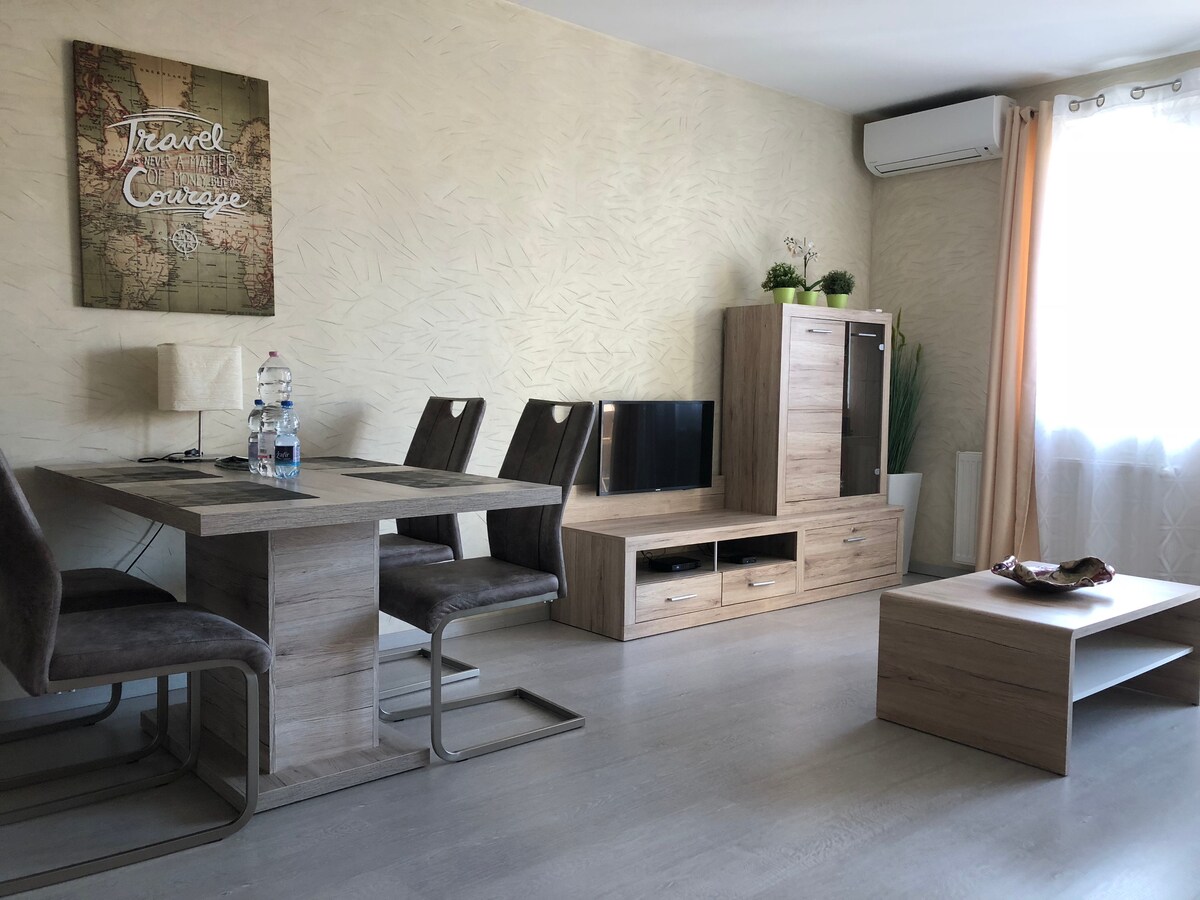 靠近塞切尼浴场的儿童友好型单间公寓,带空调