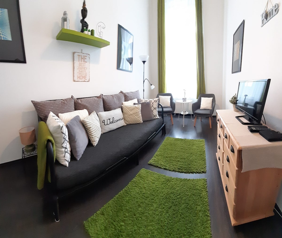 A stylish and harmonious apartment room with a private bathroom, wifi, tea & coffee machine, washing machine, iron and fully equipped kitchen! Centrally located between the Heroes Square(City Park, Széchenyi Thermal Bath) and Keleti railway station(international station and biggest transport node in Bp) with many restaurant and entertainment options. City center is reachable by foot within a few minutes walking. The flat is a real "home away from home" and is light, warm, cosy and comfortable.