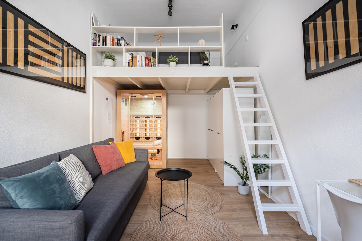 Your cozy Budapest escape awaits! Come home to your own private SAUNA retreat- soft lights, calming music, pure relaxation. Enjoy FREE PARKING in a secure indoor garage – zero stress. Cook like home in the fully equipped kitchen, sleep soundly in the mezzanine queen bed, or unwind on the sofa below. There’s a stylish bathroom, shower & even a washing machine for longer stays. Stay perfectly comfortable year-round with AIR CONDITIONING.
