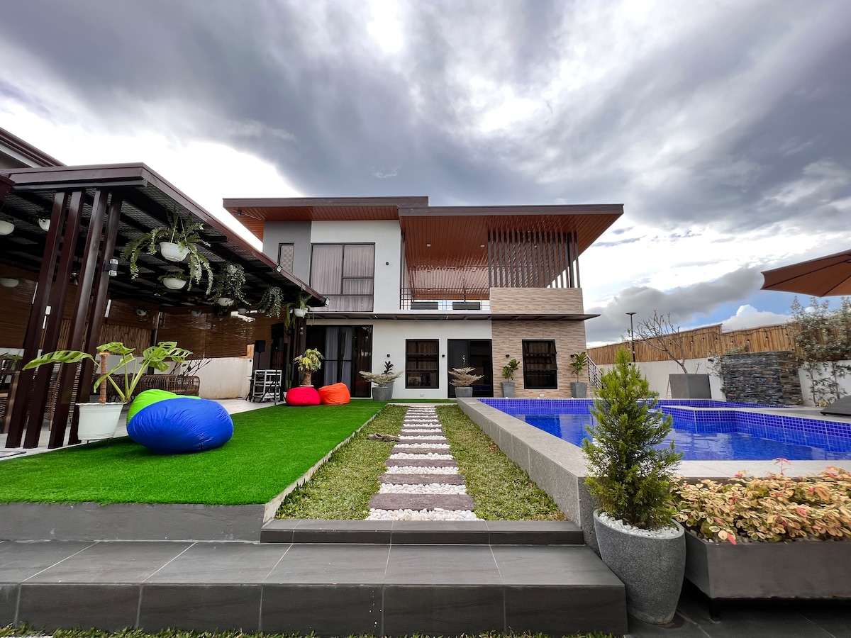 Spacious, stylish, 1,000sqm resort-like home in Tagaytay w/ amenities like swimming pool, basketball court, cinema room, game room & videoke. Ideal for wedding preps, birthdays or a relaxing staycation. Picture having an exclusive clubhouse-like space for your group throughout your stay. Parking for 8-10 cars, perfect for big groups. Our on-site staff are ready to assist, NO ADDITIONAL COST. The property is fully gated, enclosed by a private perimeter fence with CCTV cameras around the exterior.