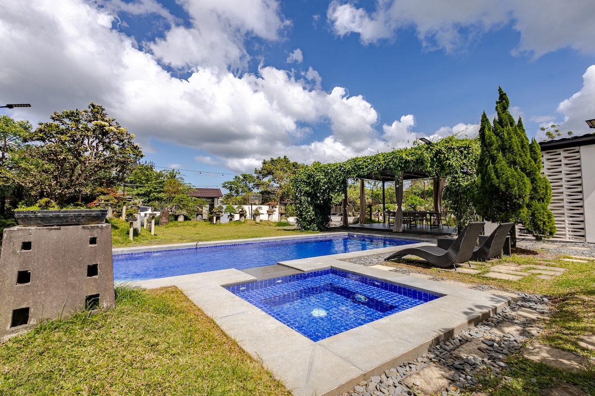 Welcome to Nordic A frame villa ! 🏡 Retreat to the A-frame villa convenientlyNestled at the border of Tagaytay and Silang . Wake up to stunning surroundings, with an IG-worthy garden and elegant interior decor that is sure to impress. Immerse yourself in luxurious amenities like the private pool and jacuzzi, perfect for families and groups. Heated pool and jacuzzi are available with additional fee. Wi-Fi powered by Starlink High-Speed Internet.