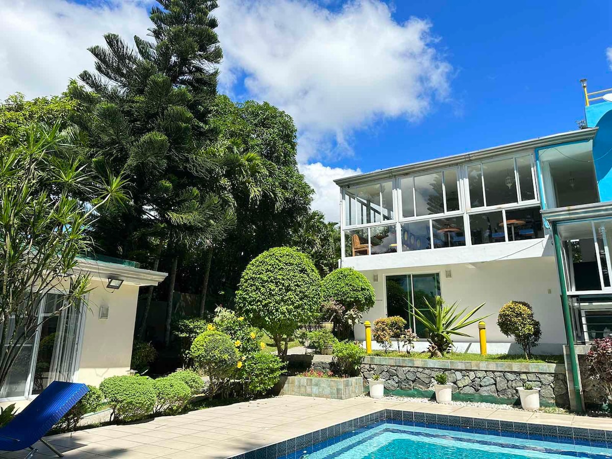 Enjoy a spacious, American-inspired home surrounded by pine trees in Saratoga Hills, Tagaytay Midlands. - Accommodates up to 30 guests (₱1,300 per guest/night after 12pax) - Free breakfast buffet (for bookings with base rates 15k above) - 65-inch TV with Netflix & YouTube - Starlink internet (100+ Mbps) - Karaoke & billiards - Large griller & smoker - Fully equipped kitchen with utensils & condiments - Arcade & board games - PWD & pet-friendly - We can sponsor Guest Cards with a FEE