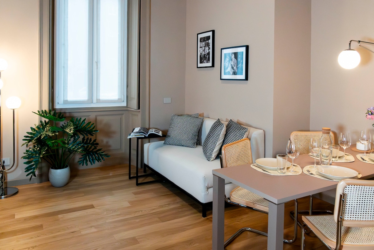 Lovely third floor studio in the heart of Milan, right next to Arco della Pace. Adjacent to the newly renovated apartment is a terrace facing Piazza dei Volontari square. Spend your day enjoying a walk in the beautiful Parco Sempione and visiting the city's landmarks (all below a 20min walk). At night this area transforms in one of the trendiest in Milan, with a great variety of restaurants and bars. Be aware that since the apartment is in a liberty building from 1924 there is no elevator.