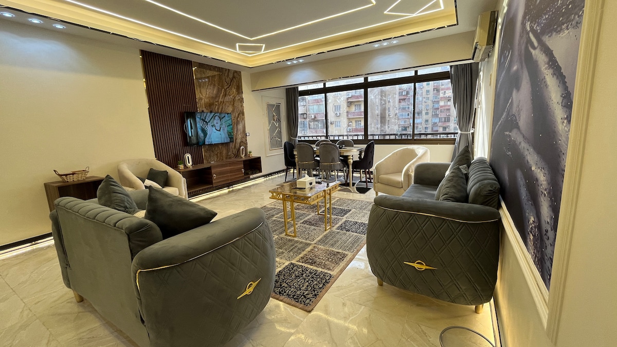 Welcome to your home away from home! Just minutes away from the airport. Our warm spot is adorned with modern comforts, surrounded by greenery, restaurants, supermarkets, kiosks (walking distance), and the most popular malls in Egypt nearby. Everything you need is right here. Your ideal stay awaits!