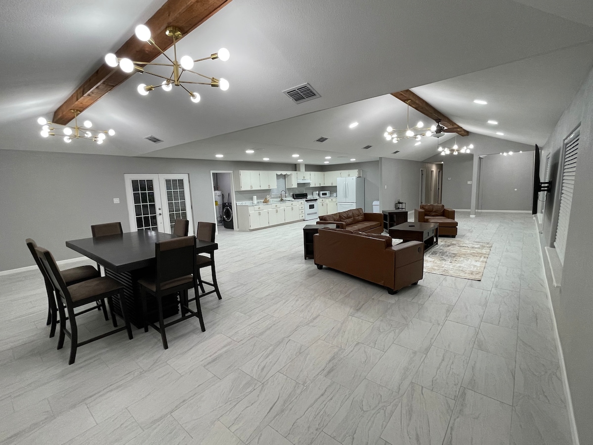 "A Touch of Color" is a vibrant 4-bedroom home in a newly built neighborhood, each room a different color! Featuring a 3-in-1 pool/billiards, ping pong, and dining table, an arcade/office with 3 machines and a 2-person desk, 3 TVs, a full surround sound, a fully equipped kitchen, lots of dining space, a 2-car garage, and more—all in a unique, fun space perfect for families, groups, or work trips! Relax, play, and create memories in style!