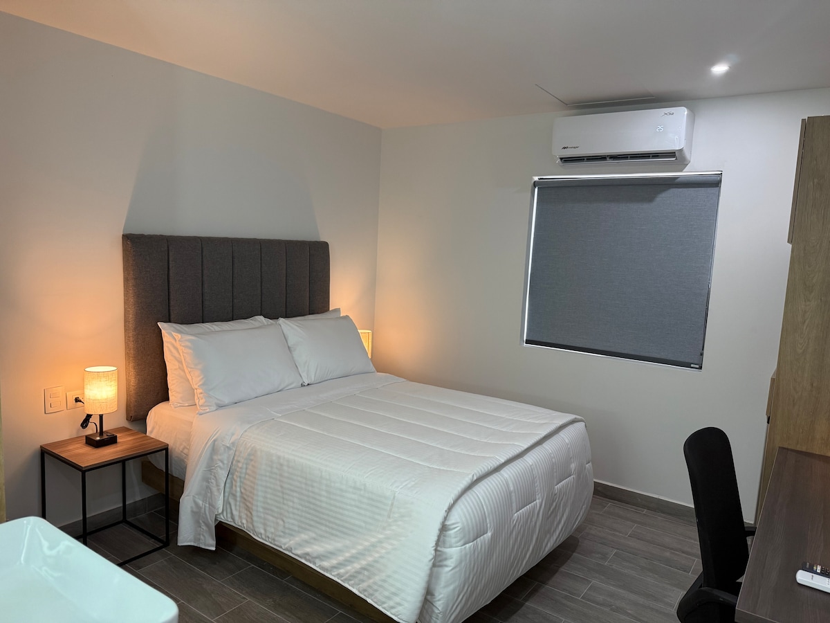 Disfruta de una experiencia única en nuestra acogedora suite, ubicada a solo unos pasos del histórico Barrio Antiguo y el vibrante centro de Monterrey. Está suite está cuidadosamente diseñada para brindarte el máximo confort. Perfecta para quienes buscan una estadía íntima en un ambiente relajante, rodeados de la cultura y energía de la ciudad.