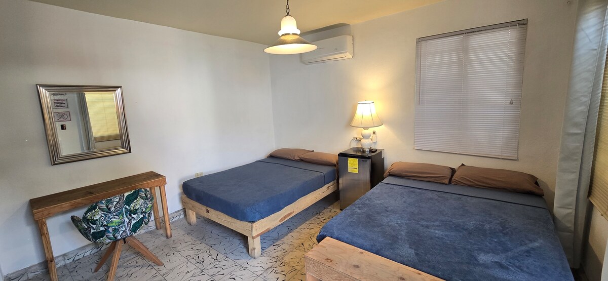 Room with all the comforts in a 16m2 space, it has a private bathroom, work desk, air conditioning, 42-inch television with cable access, YouTube and Netflix. It has a restaurant and offers a courtesy of sweet bread and coffee in the morning, during your stay. Cell phone calls and local calls free of charge. High speed Wi-Fi connection. Daily cleaning service in the room included. Luggage storage. There will be staff to guide you 24 hours a day.