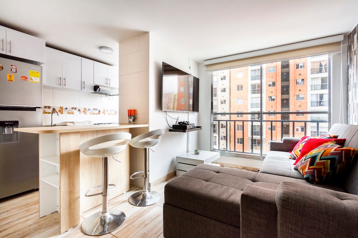 Welcome to our apartment, which can accommodate up to 5 people. This fully equipped apartment features 2 bedrooms, a bathroom, a modern kitchen, and a cozy living room. The location is ideal, close to the Madelena TransMilenio station, restaurants like KFC, supermarkets such as ARA and OXXO, and just a 15-minute walk from El Paseo Villa del Rio shopping mall. Perfect for families or small groups looking for a comfortable stay. We look forward to welcoming you soon!