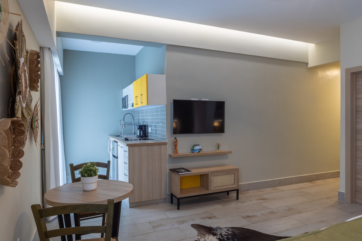 Loft 103 at Casa Adefra, located on El Conde Street in the heart of the Colonial Zone. Walk easily to the main attractions, restaurants, and cafés. This loft features a comfortable living room (no balcony). Room features: -Keyless room access -Private bathroom -Smart TV with local cable and Netflix -In-room safe -Air conditioning -Electric water heater -Kitchenette with two-burner electric stove -Free high-speed Wi-Fi Daily housekeeping and breakfast included. Front desk available 24/7.