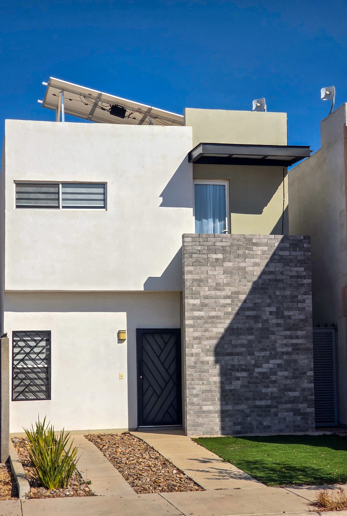 Nos encontramos en Ciudad Cuauhtémoc, Chihuahua. Disfruta de una experiencia con estilo en este alojamiento moderno a solo 5 calles de la plaza principal y de la estación del CHEPE en el centro de la ciudad. Es una zona muy segura y puedes preguntar por nuestro estacionamiento privado.