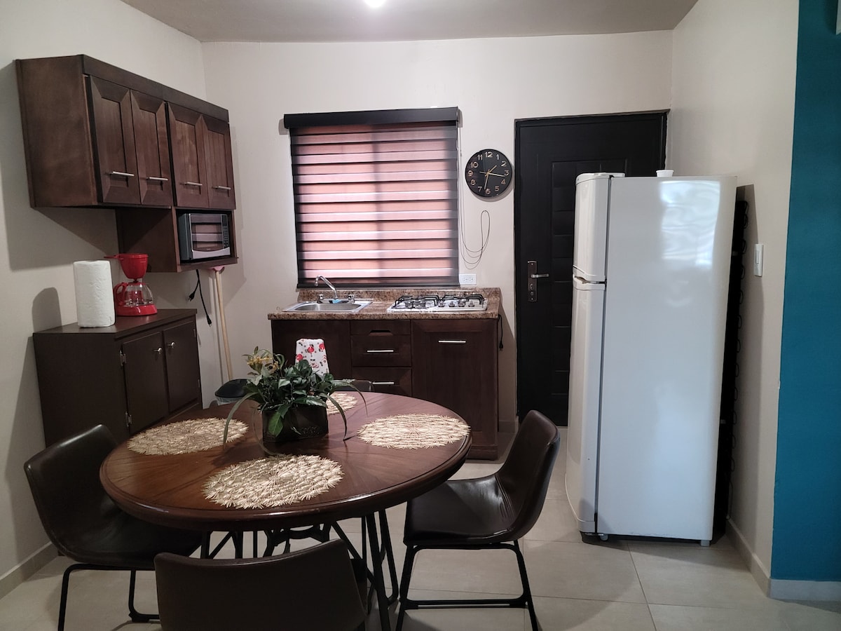 PLANTA BAJA. ALOJAMIENTO SAN JUAN. Para 2 personas. Planta baja. puerta al fondo, cuenta con su refigerador, micro, jarra electrica, pantalla 48" wf , miniesplit , frio y calor. agua caliente. NO CUENTA CON ACCESO CON ACCESO ALA COCHERA. NO FIESTAS.
