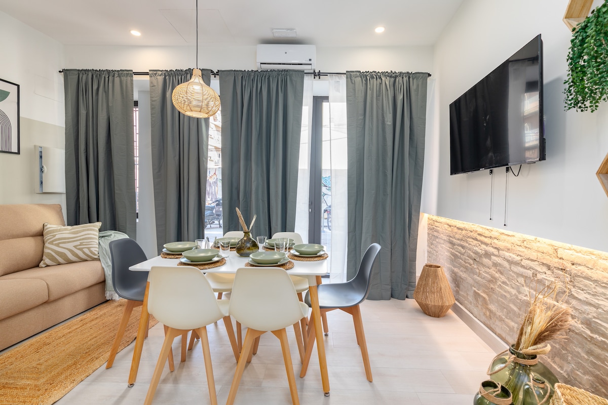Inscrito en RUA: ESFCTU000046059000261784000000000000000000VT-42244-V4 1st floor 55 square metre apartment in Ruzafa, the heart of Valencia. Recently refurbished and with all the facilities. Surrounded by supermarkets, shops and trendy bars. It has double glazed windows, a master bedroom with an ensuite bathroom and a sofa that might be used for sleeping too ( not taller 1,75- 5,9).