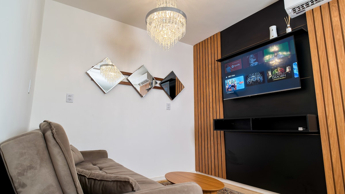 ✨ Conforto e vista incrível! Aproveite este moderno apartamento de 48m² com quarto king size, sala com sofá-cama e sacada ampla com vista para o parque aquático. Cozinha equipada, ar-condicionado em todos os ambientes, Smart TV, frigobar e comodidades para café e chá. Inclui roupas de cama, toalhas e acesso à piscinas (Acesso ao Blue Park é a parte) 🌴