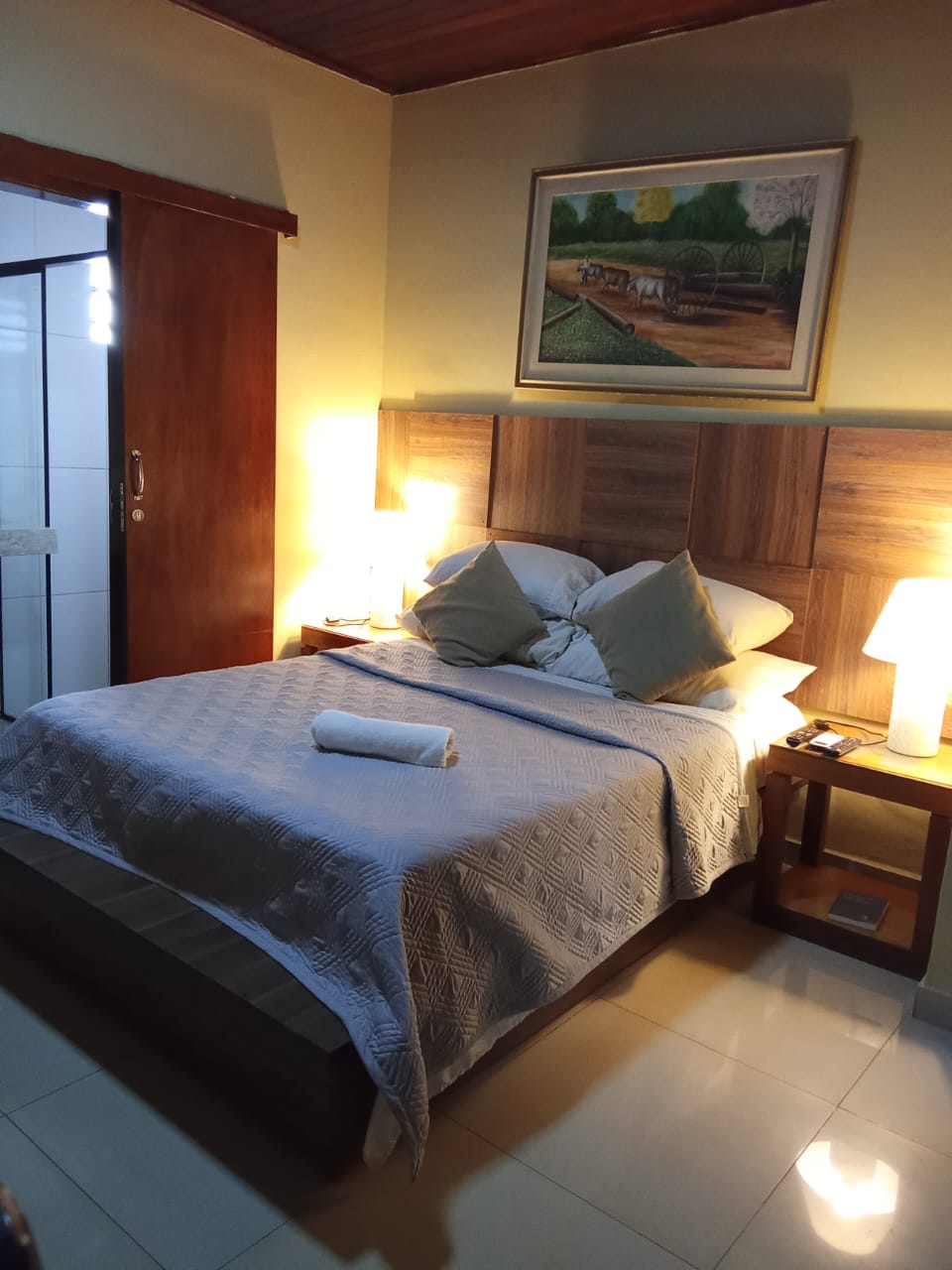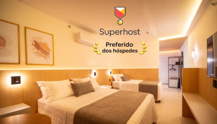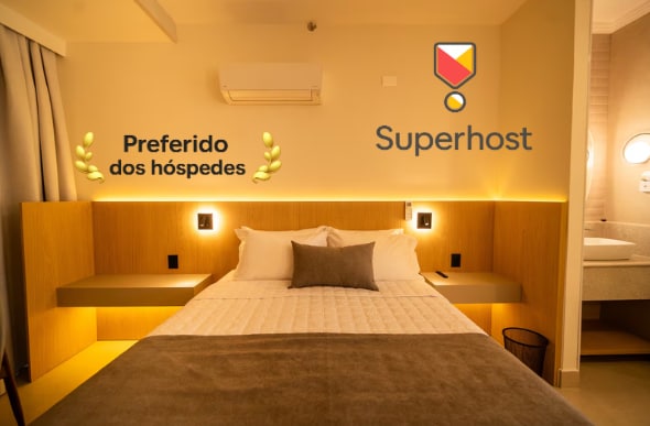A suíte contém uma cama de casal Queen. Possui Wi-Fi, ar-condicionado, TV smart e cofre. O banheiro privativo inclui toalhas, shampoo, condicionador, sabonete e secador de cabelo. O complexo está localizado na Avenida das Cataratas e oferece facilidades para sua conveniência. No prédio, você encontrará lavanderia self-service, casa de câmbio, agência de turismo, locação de veículos, Subway e conveniência 24 horas com caixa eletrônico para operações bancárias a qualquer momento.