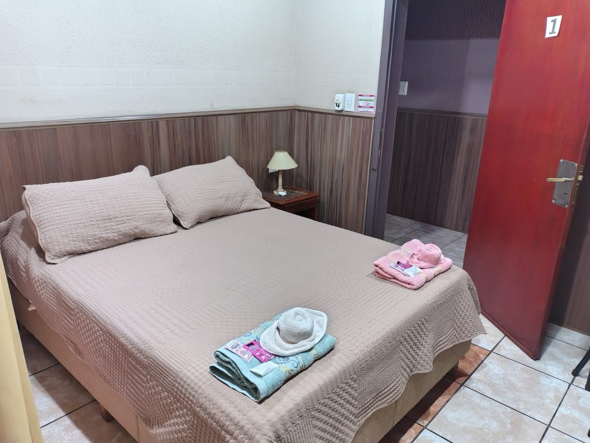 Habitación privada con baño independiente y desayuno en Hotel 3 Estrellas. Simple pero con todas las comodidades que puedas necesitar como desayuno, bar, piscina, estacionamiento, wifi, aire acondicionado, calefacción, frigobar, tv y mucho más que harán una estadía única. A 11 cuadras del centro ofrece una zona relajante para disfrutar del aire puro, el silencio y la naturaleza. Creado para estadías en familia o con amigos