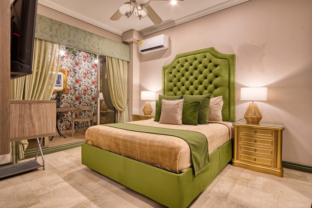 La Habitación Victoriana Estándar es un refugio de encanto clásico y serenidad contemporánea. Con 22 m², combina el estilo victoriano con tonos verdes inspirados en la naturaleza, transmitiendo equilibrio, elegancia y frescura. Cuenta con un patio interno privado, cerrado pero lleno de luz natural y atmósfera orgánica, perfecto para leer, disfrutar un café o simplemente relajarse. Su diseño interior celebra la armonía entre lo clásico y lo natural, invitando a desconectarse del mundo exterior.