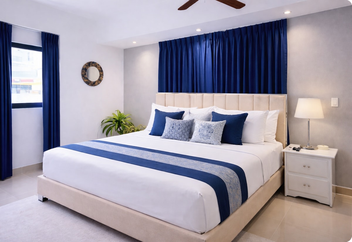 Disfruta de la tranquilidad de un condominio cerrado a solo 16 minutos del Aeropuerto Internacional Las Américas. Este apartamento de 3 habitaciones es perfecto para familias o grupos que buscan comodidad, estilo para conocer Santo Domingo. Olvídate de las preocupaciones: accede al apartamento con cerradura digital, y descansa tranquilo sabiendo que, ante cualquier corte de luz, un inversor de respaldo mantiene funcionando luces, internet y ventiladores para que tu estadía no se interrumpa.