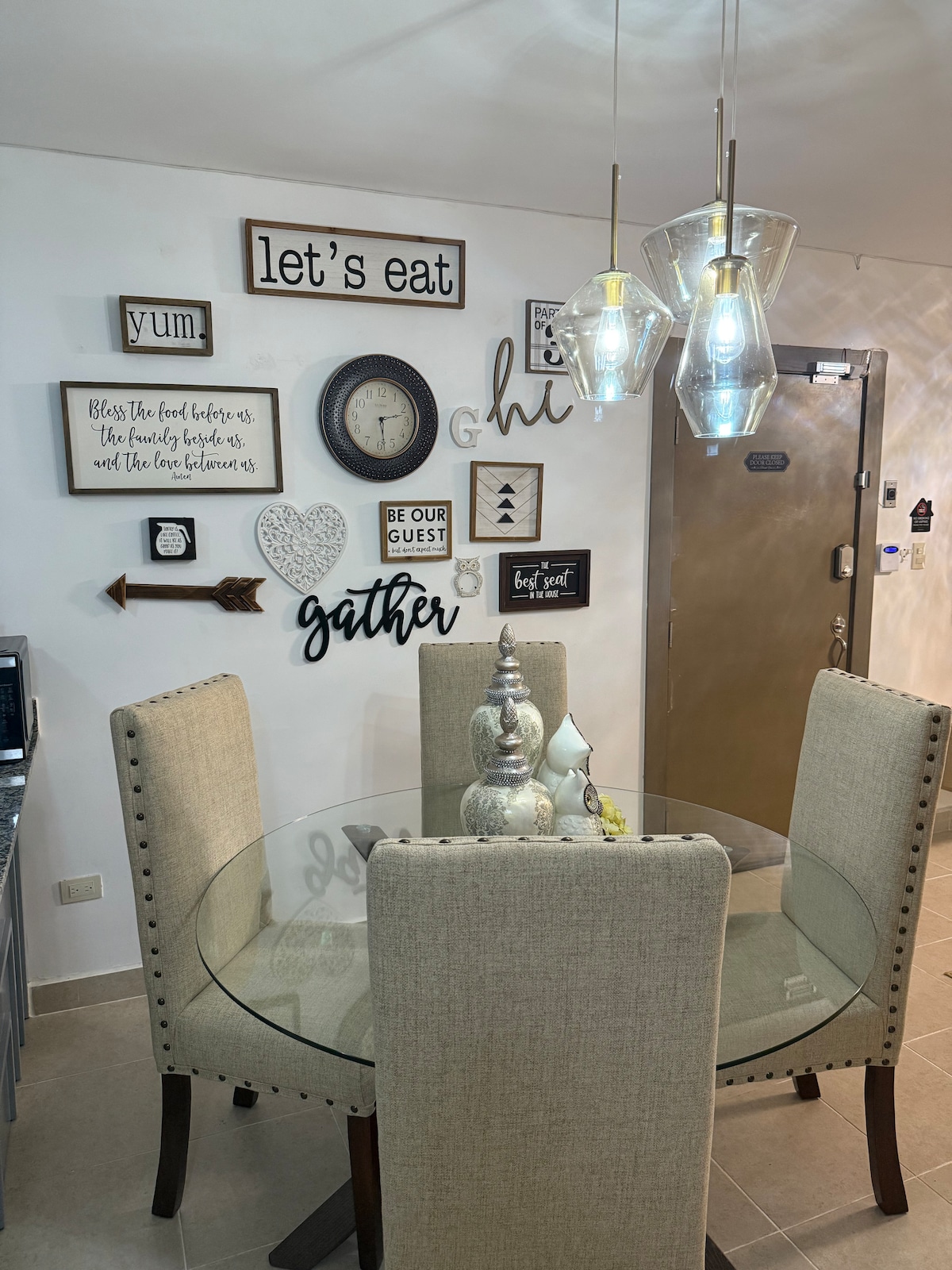 Apartamento con agua🌡️ caliente🚿en control de acceso cerrado, Seguridad privada ✅ Confortable TV 📺 de 65 pulgadas en la sala. En la habitación Principal tenemos TV 📺 de 43 pulgadas con entretenimiento digital disponible; Netflix, YouTube etc. Aire acondicionado❄️ de 18K btu, Wifi📡 Disponible En la segunda habitación 🛏️ tenemos 2 camas y un abanico de techo con hermosos armarios de espejos 🪞. Cuarto de Cine🍿, Juegos 🎮o trabajo 🖥️ acondicionado con lo que necesitas para disfrutar ❤️.