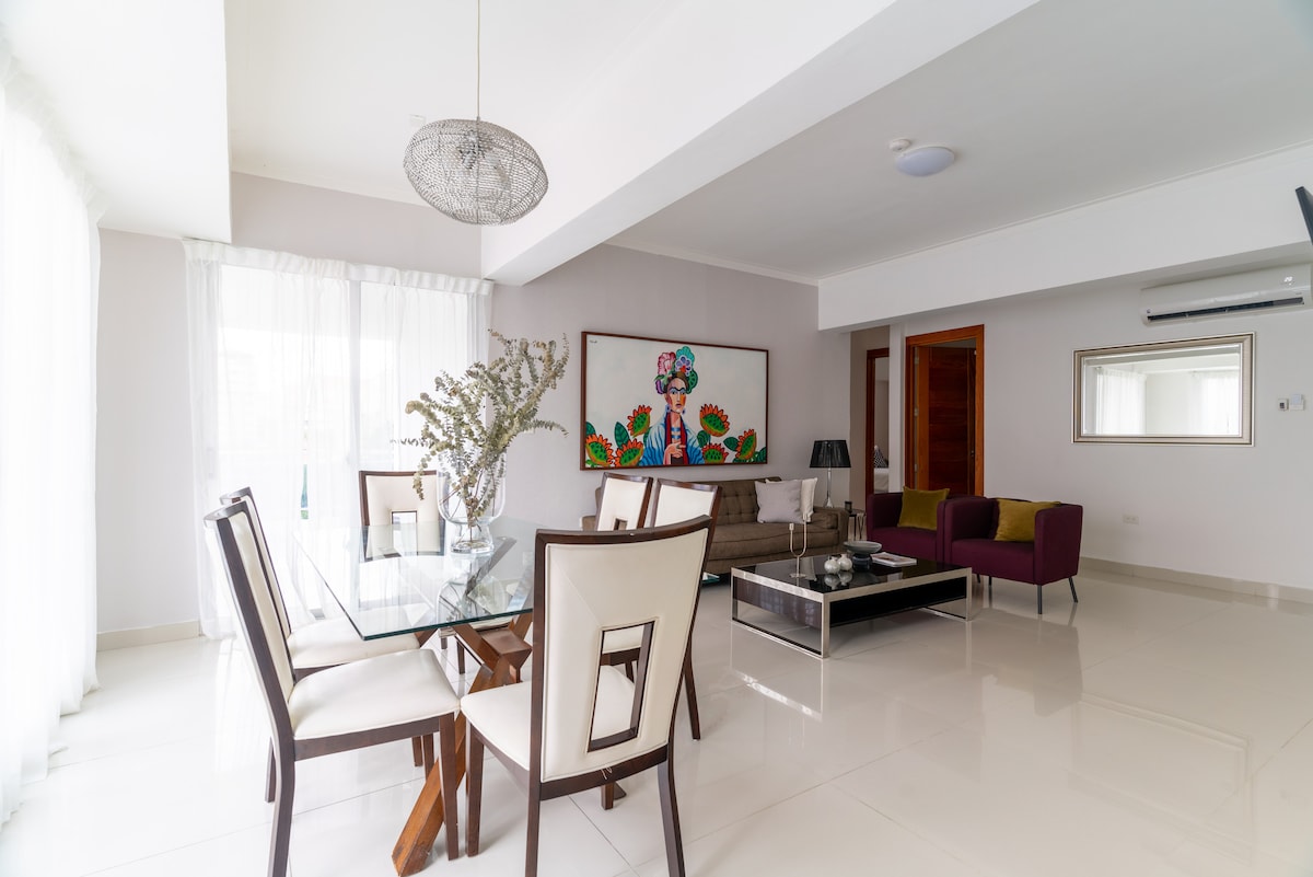 Bienvenido a nuestro acogedor apartamento a minutos de la Zona Colonial, la playa y el aeropuerto. Rodeado de comodidades como supermercados, bancos y restaurantes. Nuestro alojamiento cuenta con un diseño moderno, comunicación impecable, limpieza perfecta y entretenimiento gratuito con Netflix. Nuestros huéspedes terminan elogiando la belleza, limpieza y la atención del anfitrión, con un 99.9% que volvería a hospedarse. ¡Esperamos hacer tu visita inolvidable!.