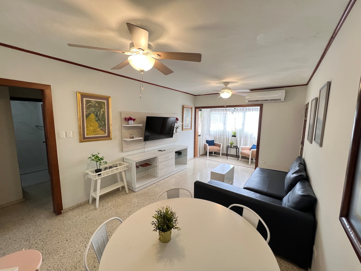 Relax and enjoy. Apartment N2-402. - Palmeras del Este 3. 2 parking spaces in front of the apartment entrance. Netflix in each bedroom and living room. Strategic location: 20 minutes from the beach and the Airport. Everything less than 5 minutes away in Ciudad Juan Bosh with Delivery service: Grocery store, Supermarket, Pizzeria, Fast food restaurants, Drinks, Bakery, toast and empanada bar. Others: Pharmacy, Barber Shops, Salons, Hardware Store.