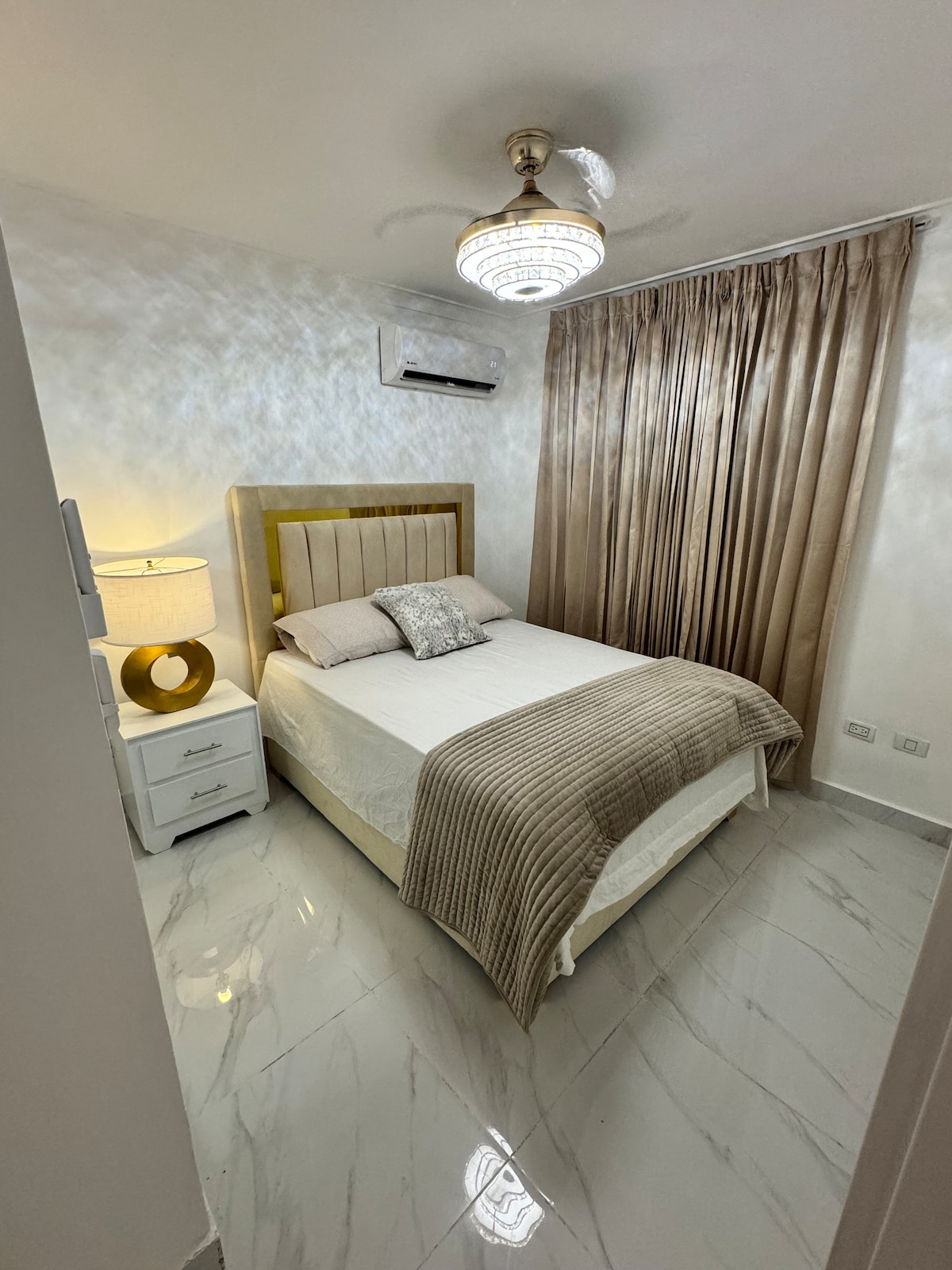 🏠 Acogedor apartamento en Ciudad Juan Bosch. Disfruta de un cómodo apartamento de 2 habitaciones con aire acondicionado, un baño, cocina equipada, sala, comedor, televisor en la sala y en la habitación principal. También cuenta con lavadora, secadora, inversor, agua caliente, gas común, Wi-Fi, energía eléctrica 24 horas y seguridad 24/7. Ideal para estancias tranquilas y seguras.