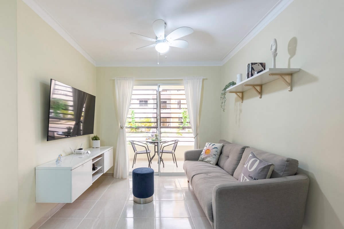 Kick back and enjoy this calm,stylish modern second floor newly decorated and built apartment. Location close to an Ole supermarket, Banks, Hospital, Public Transportation, Basketball courts, kids areas and 24 hours security on the premise. 15 minutes from Las Americas airport, 18 minutes from the colonial zone, nice restaurants and 20 minutes to Boca Chica.