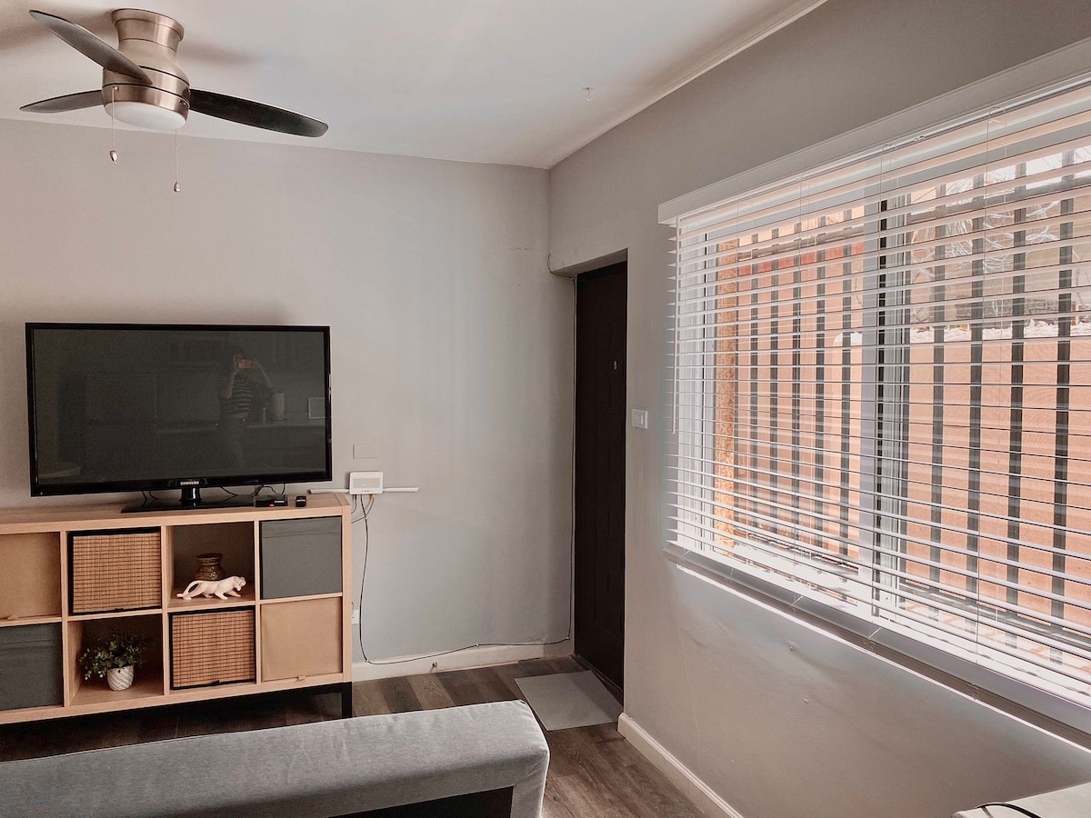 Espacio 5☆ remodelado con todo lo nuevo/básico para una alojamiento tranquilo, seguro y céntrico. Tiene un excelente ubicación te permite llegar en pocos minutos (auto) a varios puntos importantes de la ciudad, como: 3 min. de USA (puente libre Int), 15 min. del Consulado Americano, 4 min. de la UACJ y Centro Médico de Especialidades. Cuenta con entrada autónoma, y cámaras de seguridad en la propiedad. Cuenta con una cama queen y un sofá cama, TV inteligente con Internet y cuenta de Netflix.