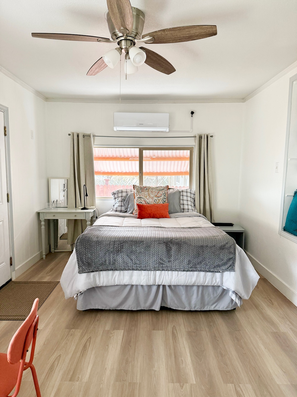 Welcome to our beautifully renovated cottage, nestled in the quaint and historic neighborhood of Manhattan Heights – right here in the heart of El Paso! This 100+year-old studio-style cottage still holds its original exposed brick wall foundation, exuding a rustic and raw look to it. The vaulted ceiling inside the cottage brings in extra natural light and an aesthetic flair to the space which you will definitely admire. Additionally, for added safety, we change the door code after each stay.