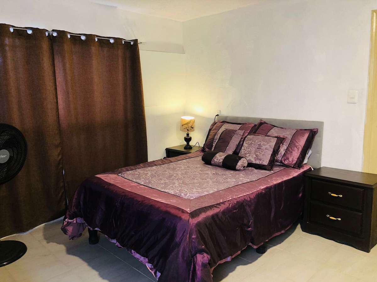 Relax at this peaceful confortable apartment with ALL commodities, minisplit, kitchen, restroom, dishes, Fridge, pans, towels, absolutly everything you need like you were in you own house.