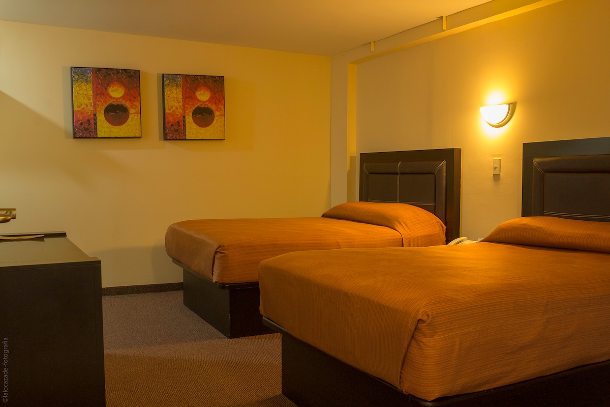 Somos un hotel contemporáneo, encontrarás una habitación cómoda, confortable y limpia. Bien equipada con una cama muy rica, aire acondicionado mini split, tv pantalla plana con programación por cable, internet inalambrico WiFi gratuito, 2 botellas de agua diariamente, y todas las amenidades para que tengas un buen amanecer...!®